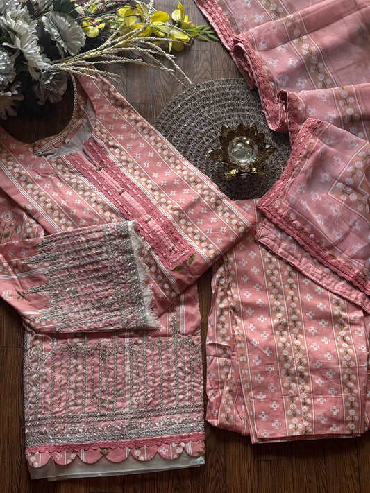 Haya Pink -3 Piece Raw Silk Suit with hand work