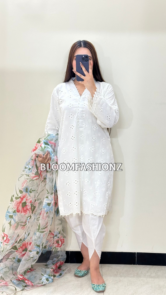 3 Piece Chikenkari Lawn Suit White