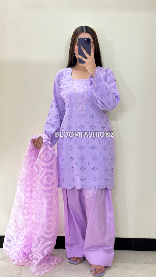 3 Piece Chikenkari Lawn Suit Lilac