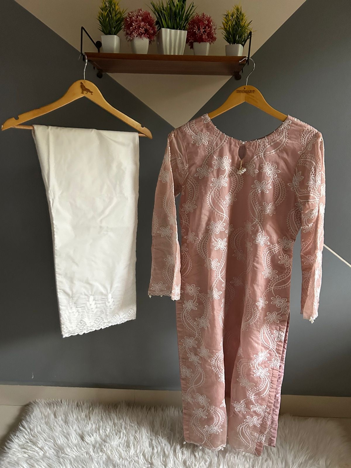 Description: Embroidered Shirt and Embroidered Trouser for This 2-piece dress is a perfect blend of elegance and comfort. The embroidered Chickenkari lawn shirt adds a touch of tradition, while the half white trouser brings a modern twist. Enjoy the best of both worlds with this stylish ensemble.