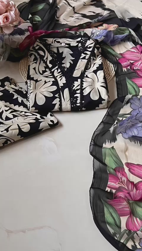 3 Piece Stitched Lawn Digital Suit with laces and tussalss. These suits are made of high-quality lawn and are beautifully stitched with added laces for a touch of elegance. You'll feel confident and stylish in this sophisticated and expertly crafted outfit.