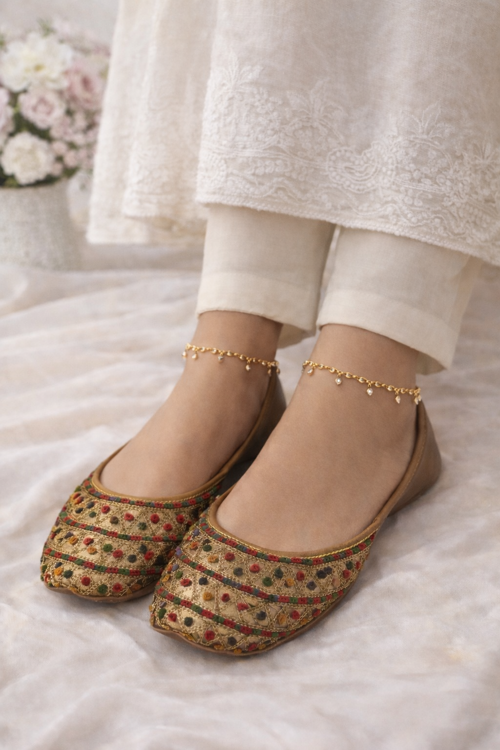 Add a touch of tradition to your style with this elegant Multicolor Thread Work Khussa. Beautifully handcrafted with vibrant thread embroidery, this khussa blends classic craftsmanship with modern comfort. The soft inner lining and lightweight sole make it perfect for all-day wear, whether for festive occasions or casual outfits. A timeless traditional khussa that pairs beautifully with Eastern wear. ✨