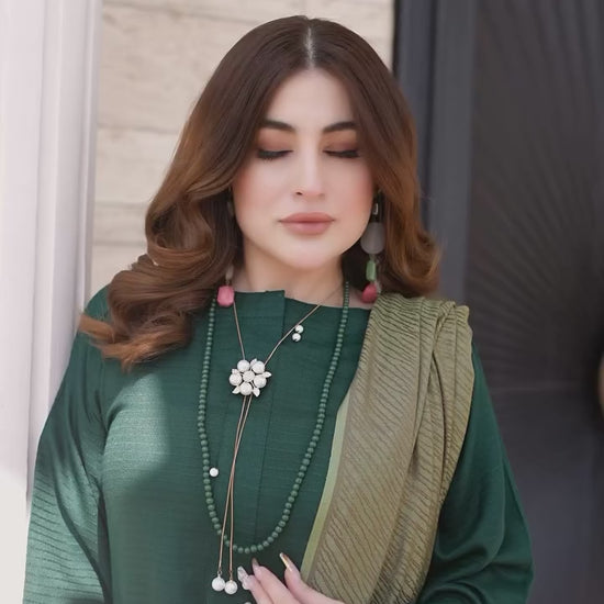 Minimal yet striking, this deep green Dhanak suit with its classic wool shawl brings effortless warmth and sophistication to your winter wardrobe.